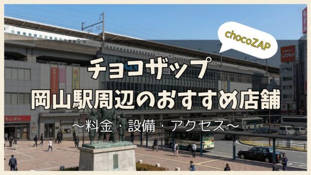 エリア別・駅別まとめ 【チョコザップ】岡山・倉敷駅周辺のおすすめ店舗まとめ!料金&設備&アクセスを徹底解説! 2026年3月13日 chiro https://chocomeguri.com/wp-content/uploads/2025/06/ちょこめぐりロゴ.png ちょこめぐり
