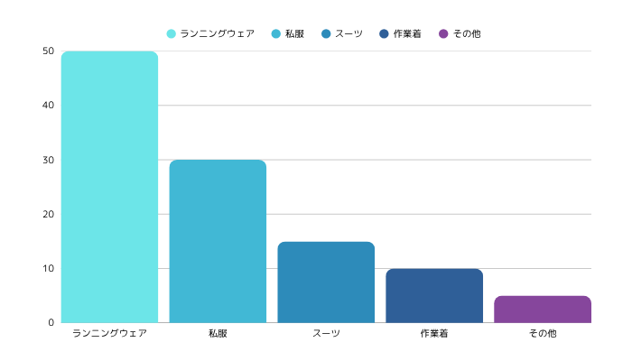 1番多いのはやはり「ランニングウェア」です。普通にびっくりですけど、「私服」や「スーツ」の方も意外と多かった印象です。