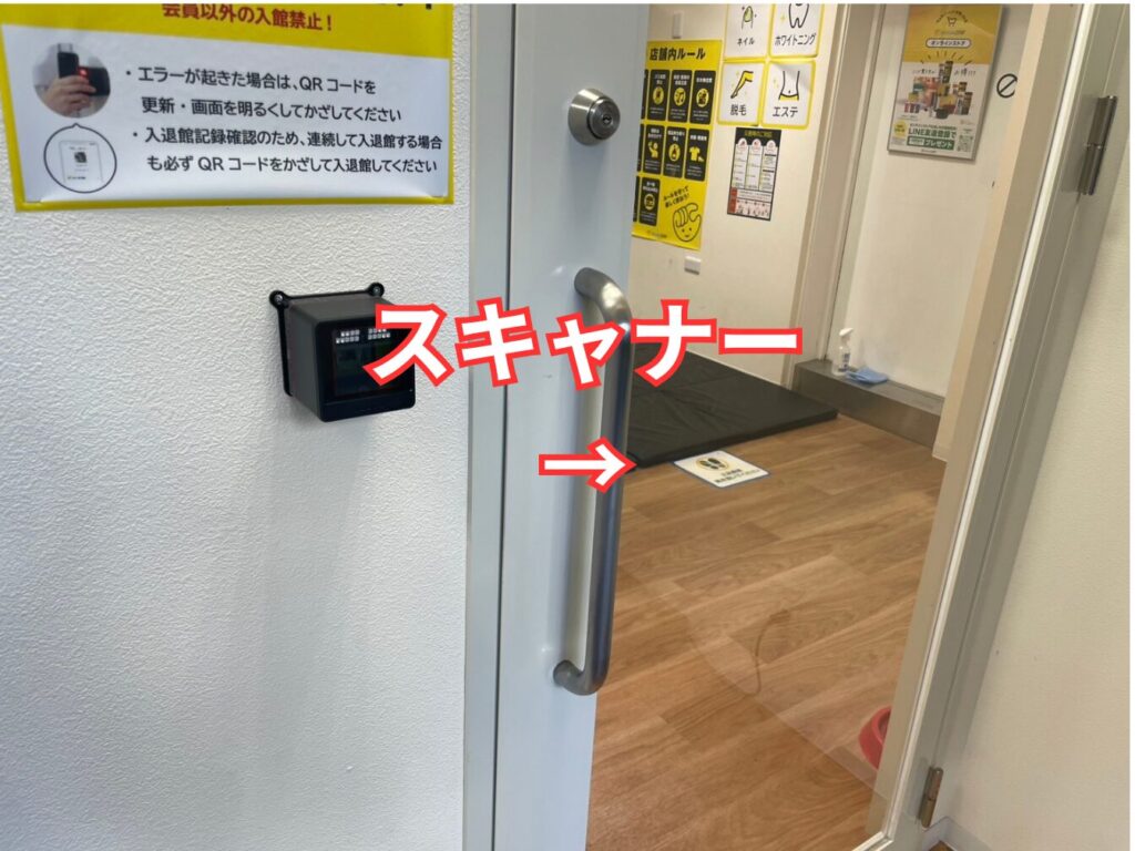 表の扉を開けて、スキャナーにQRをかざして入館します。