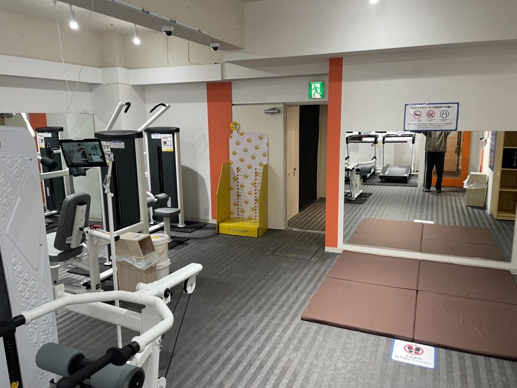 狭い…?と思いきや、奥にも部屋があり、他のトレーニングマシンやエステ・脱毛などのルームがございました。歩いてみると意外と広い!